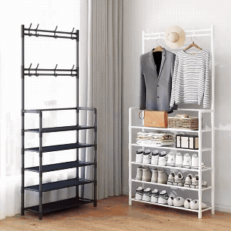 Grande Étagère de Chaussures 4 Niveaux 3 en 1 avec Porte-Manteau de haute qualité